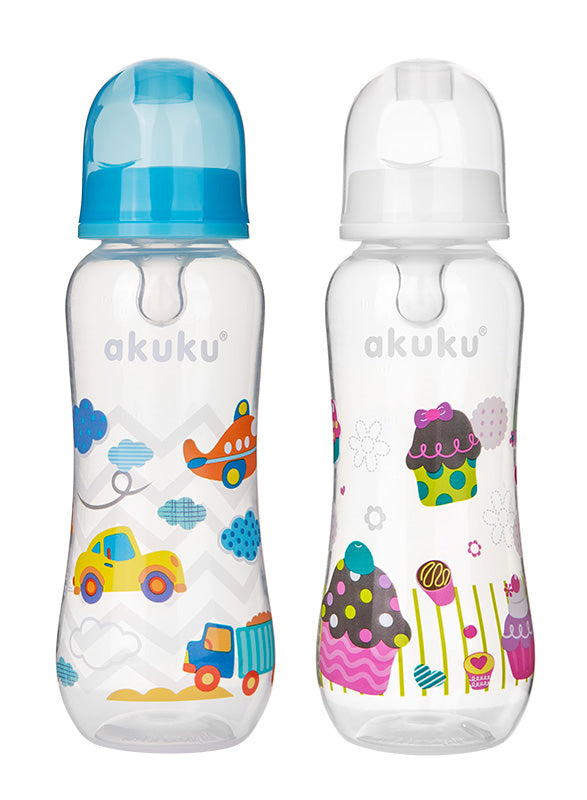 Το μπιμπερό με θηλή σιλικόνης της akuku είναι ένα παραδοσιακό μπιμπερό με σχήμα που επιτρέπει το εύκολο κράτημα για την διάρκεια του ταΐσματος.