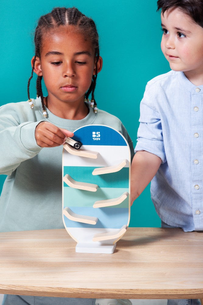 Bs Toys – Ξύλινο Σετ με Αυτοκινητάκια και ετοιμαστείτε για αγώνες ταχύτητας και ατελείωτη διασκέδαση με αυτό το σετ πίστας αυτοκινήτων!
