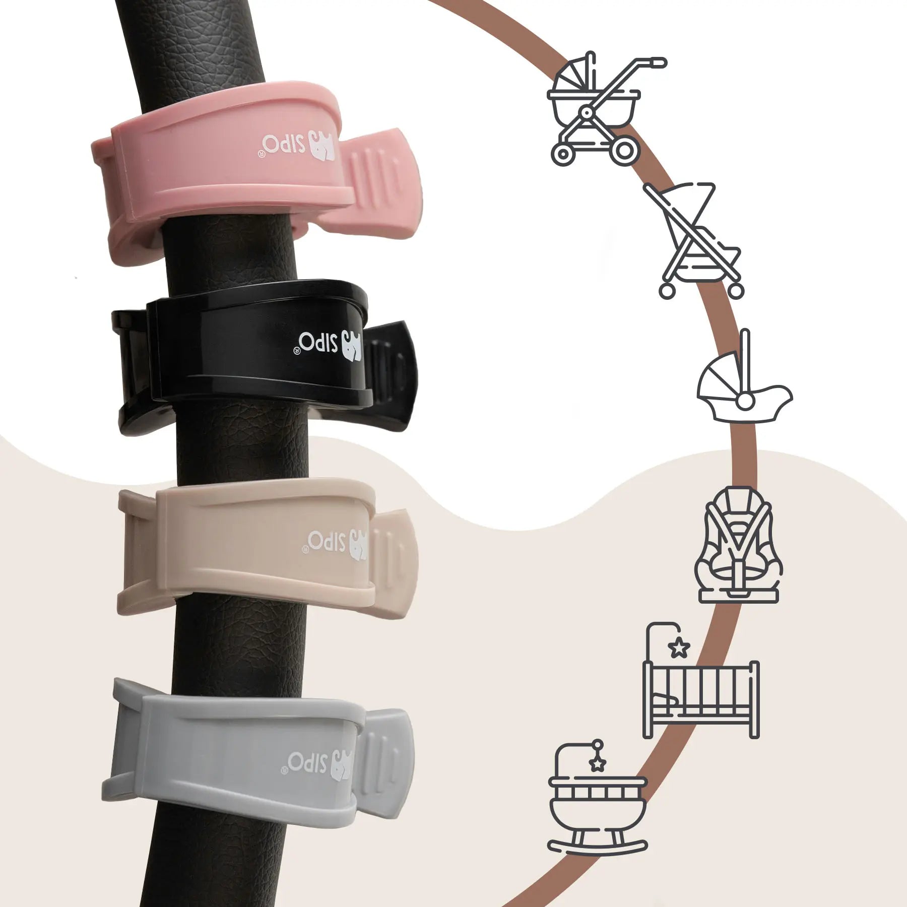 Sipo Πολυλειτουργικά Κλιπ Καροτσιού 2 τεμ. - Black
