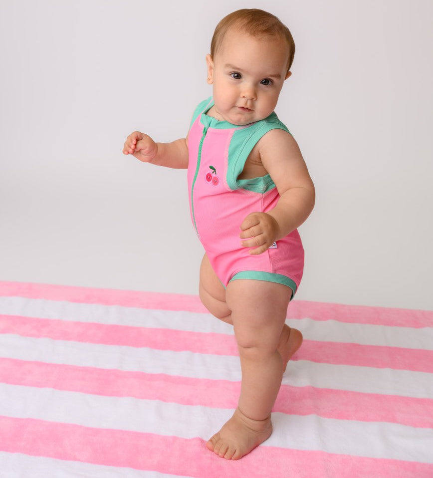 Το Ολόσωμο Μαγιώ με Στάμπα Cherry/Pink-Green από τη Zoocchini είναι η ιδανική επιλογή για άνεση και ελευθερία κινήσεων μέσα και έξω από το νερό. Με μίνιμαλ σχεδιασμό, χωρίς μανίκια και χωρίς πόδια, προσφέρει δροσερή αίσθηση και ευκολία στο κολύμπι και στο παιχνίδι.