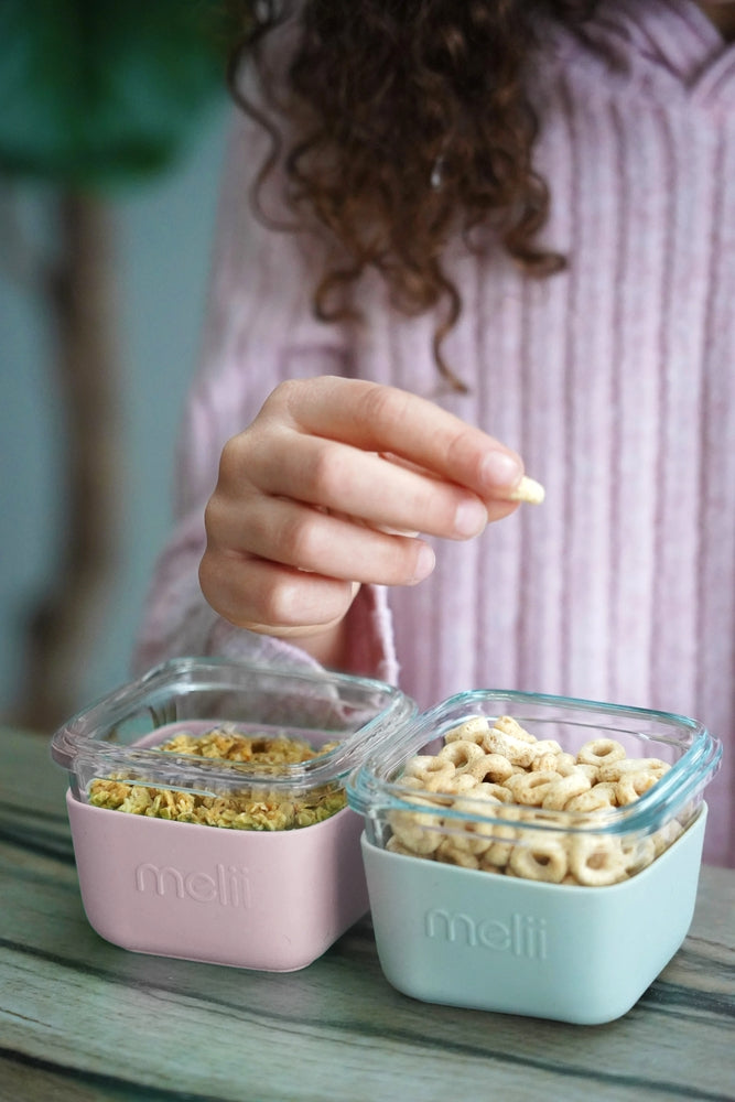 Το Melii - Glass Containers Σε Θήκες Σιλικόνης είναι κατασκευασμένο από βοριοπυριτικό γυαλί το οποίο είναι πιο ανθεκτικό στη θερμότητα από το κοινό γυαλί ανθρακικού νατρίου.