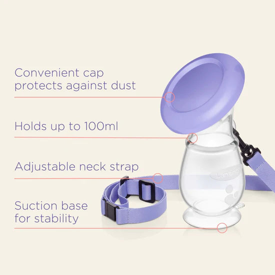 Η αντλία σιλικόνης Lansinoh συνοδεύεται από λουράκι λαιμού για να διασφαλίσει ότι εάν μετακινηθεί, χτυπηθεί ή ωθηθεί από το μωρό, το μητρικό γάλα θα συλλεχθεί με ασφάλεια, καθώς και ένα ασφαλές καπάκι για να κρατήσει τη σκόνη ή να χρησιμοποιηθεί ως βάση τοποθέτησης