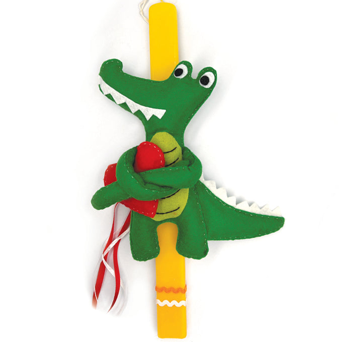 Η Λαμπάδα Κροκόδειλος είναι χειροποίητη και το σχέδιο είναι κατασκευασμένο από φετρίνα με πολλή προσοχή και λεπτομέρεια.