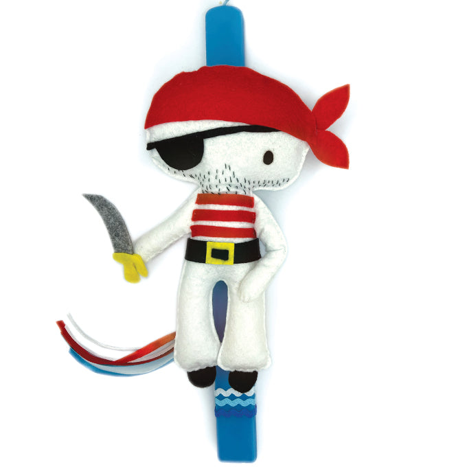 Η Λαμπάδα Πειρατής είναι χειροποίητη και το σχέδιο είναι κατασκευασμένο από φετρίνα με πολλή προσοχή και λεπτομέρεια.