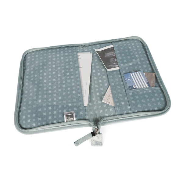 Έχει πολλαπλές πλαστικοποιημένες τσέπες κατανεμημένες και στις δύο πλευρές για καλύτερη οργάνωση των πάντων. Διαθέτει επίσης ένα πρακτικό κλείσιμο με φερμουάρ για να διατηρείτε ασφαλή το βιβλίο γέννησης και όλα τα έγγραφα του μωρού σας.
